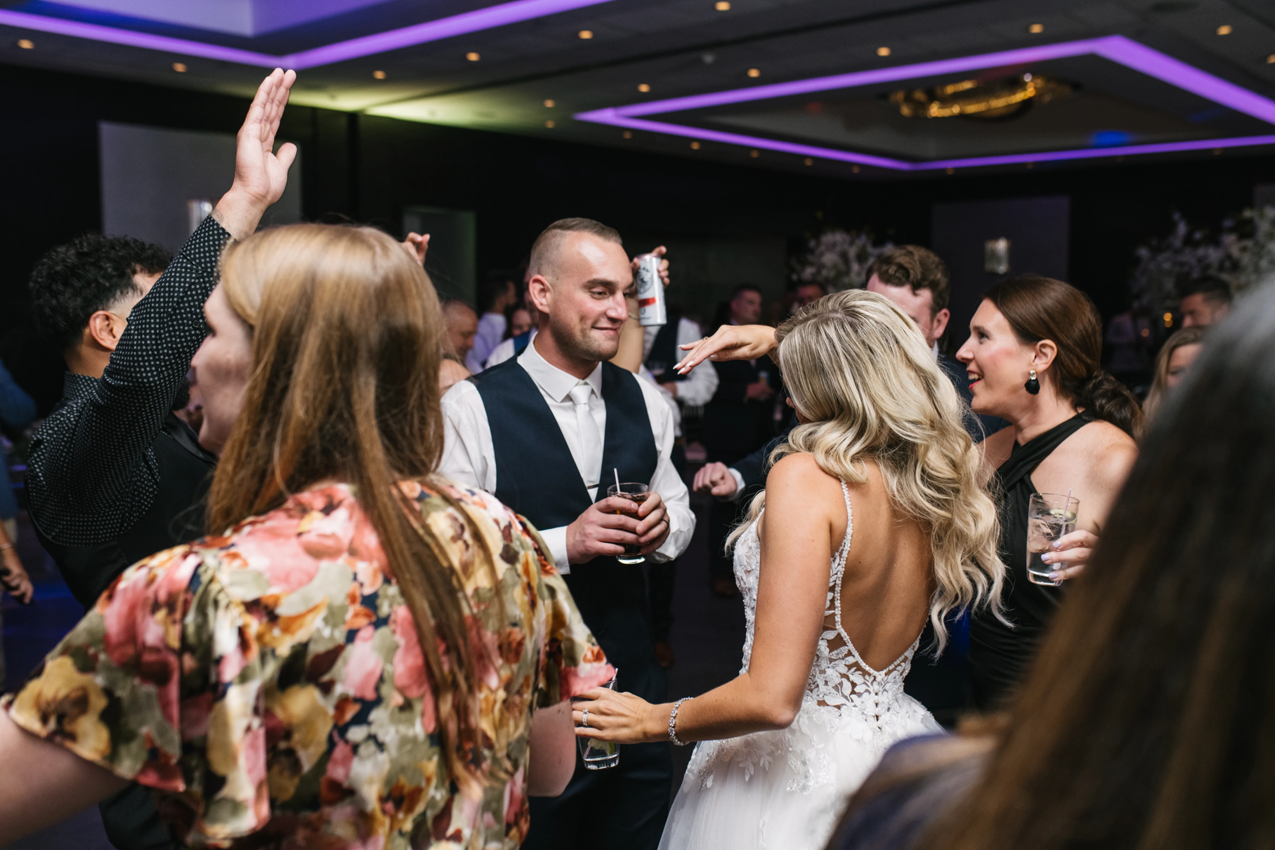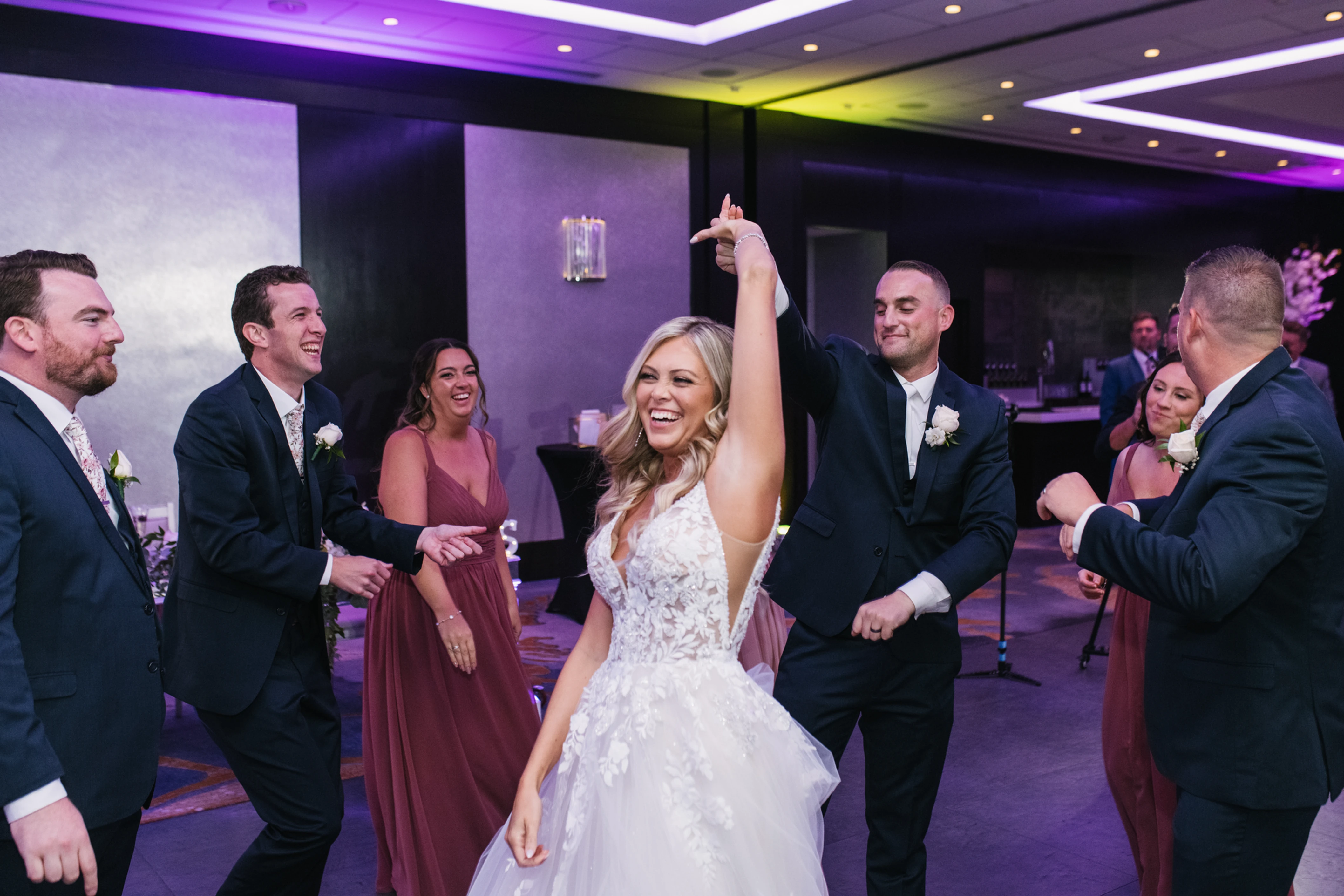 The Sheraton's built-in uplighting created the vibe and ambiance for all of their guests as we rocked out. The photo-video team scoured the dance floor capturing still shots and video clips as they documented this enchanted evening.